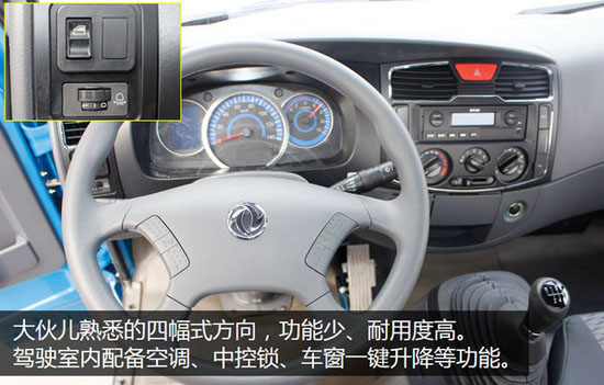 多利卡的前擋采用了大仰角的設(shè)計,駕駛員更夠能容易了解車頂部分的廣告牌及低矮的樓房線路。對于穿街走巷的輕卡而言,可以大大增加送貨安全。