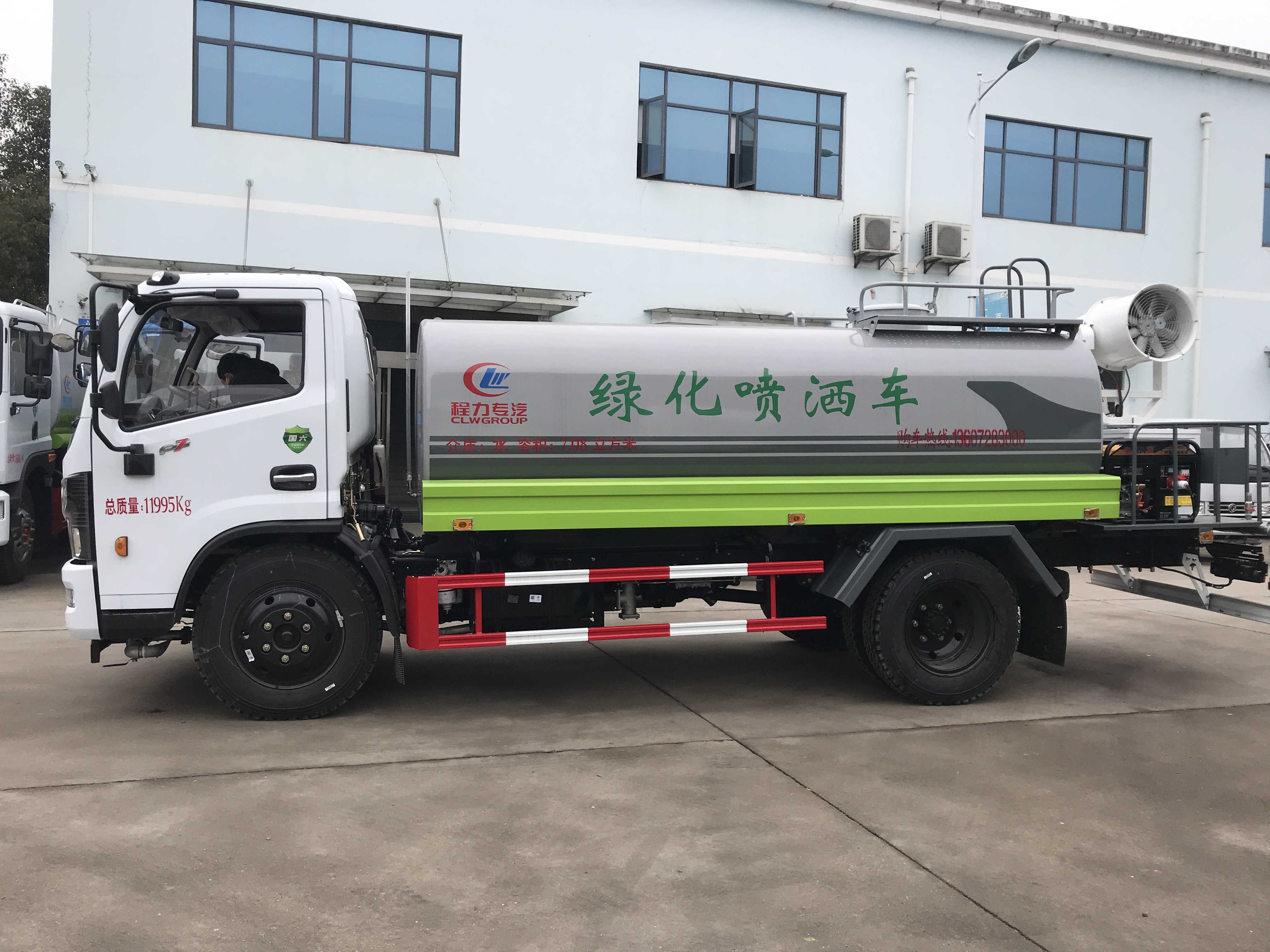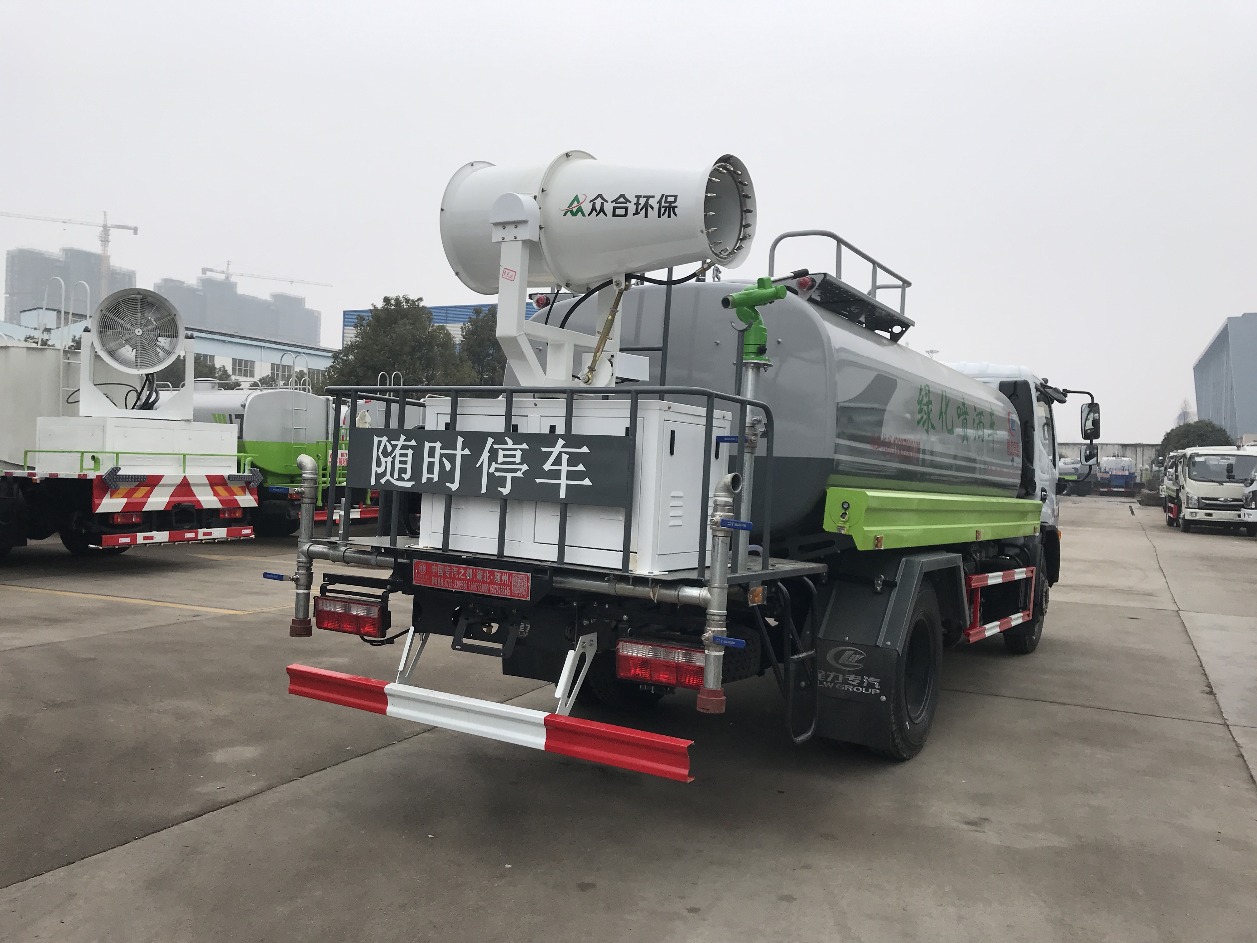 上裝配置:罐體采用武鋼Q235優(yōu)質(zhì)碳鋼板制作,前沖(噴)后灑,帶側(cè)噴,罐體后帶工作平臺(tái),帶水槍,可連續(xù)調(diào)成直沖狀、大雨、小雨、毛毛雨,帶安全護(hù)欄,配備灑水車(chē)專用灑水泵,泵可自吸自排,安裝過(guò)濾網(wǎng),帶消防接口,可通過(guò)消防栓進(jìn)水,帶自流閥,帶灑水音樂(lè)喇叭,配備兩根等長(zhǎng)輸水管,加裝30米霧炮(帶汽油發(fā)電機(jī)組)。