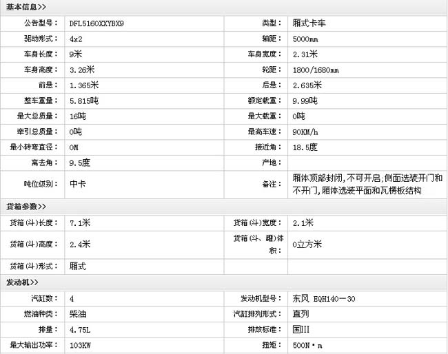 廂式載貨車(DFL5160XXYBX9)