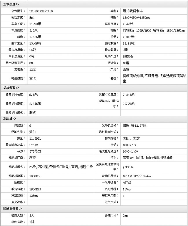 陜汽德龍F2000重卡8X4廂式載貨車(SX5265XXYNT456)