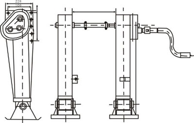 支腿雙速的解釋:搖動支腿有兩個速度,分別適合空載和重載時。一檔慢速,是將搖桿拉出搖動,適合重載。另一檔快速,是將搖動桿推入齒輪箱的檔位,搖速加快適用于收起支腿或空載時。