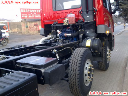 從側(cè)面看,這是一輛自卸車底盤,不過車門上面不是我們熟悉的鷹頭標(biāo)志,現(xiàn)在側(cè)面的“Z”形標(biāo)志是新大威的,難道是工人弄錯(cuò)了?