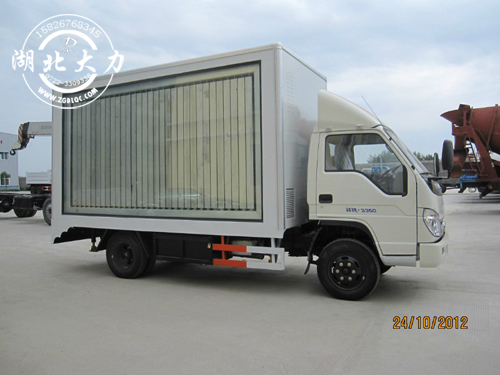 商品展銷(xiāo)車(chē),選用福田底盤(pán),3360軸距,整車(chē)長(zhǎng)約5.995米,上藍(lán)牌,C照可以開(kāi),舞臺(tái)面積18-24平方;為了滿(mǎn)足不同需求的用戶(hù),駕駛室有兩種配置,一種經(jīng)濟(jì)實(shí)惠的窄體駕駛室,另一種是豪華大氣的寬體駕駛室,可以選裝方向助力和空調(diào);側(cè)面展開(kāi)舞臺(tái)面積在16平方左右,配有舞臺(tái)梯、燈光架、幕布掛鉤及電源箱。