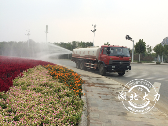 最近, 隨州園林部門又增添了新幫手——園林綠化灑水車。目前,這輛購于湖北大力汽車公司的綠化灑水車已經(jīng)正式投入使用,現(xiàn)正對雙龍大道及城東新區(qū)所有綠化帶進(jìn)行灑水作業(yè)。圖為工人師傅正駕著大力牌東風(fēng)后雙橋灑水車給濱湖體育中心附近綠化帶灑水。